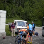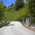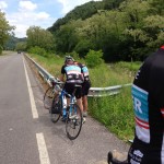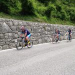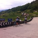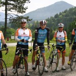 . Ein wirkliches Erlebnis, wenn man Luft und Muse hat, die Umgebung zu genießen. Von Valdobbiadene ging die Anfahrt über die Weinberge des Prosecco in Richtung Solighetto und über kleine Nebenstraßen nach Rolle. Vom Ort Tovena aus ging es dann in das Tal Richtung Passo San Boldo. Die Herausforderung an diesem Tag war eindeutig das schwülwarme Wetter, das den Schweiß aus jeder Pore drückte. In unseren Breiten hatte man ja eher noch mit dem kühl nassen Wetter zu kämpfen. An der Passhöhe angekommen – ein ebenfalls angenehmer Nebeneffekt ist, dass der Pass nicht sehr bekannt ist und daher keine Scharen von Radfahrern und Motorradfahrern die Auffahrt säumen – genehmigten sich die Radfreunde eine kleine Pause bevor es wieder an die Heimfahrt ging.