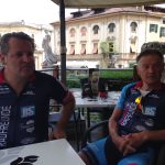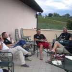 Die allerdings hatte es wieder in sich. Nicht die Höhenmeter waren das Problem, sonder wie gesagt die Schwüle und Hitze. Die Fahrt ging über Cison und Miane über die Weinberge in Richtung Santo Stefano und dann nach Valdobbiadene. 75 km und knapp 1000 Hm waren die „Ausbeute“ dieser anstrengenden aber wunderschönen Fahrt. Zum Abschluss hatten wir noch eine überraschende Begegnung mit einem Landsmann in einem Café in Valdobbiadene. Der ORF-Moderator Dorian Steidl war mit seinem Motorrad zufällig in der Gegend unterwegs.