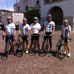 Am dritten Tag war dann vorerst die Luft etwas draußen und am Anfang fehlt etwas die Motivation. Wir fuhren mit dem Bus nach Feltre. Von dort ging es dann Richtung Bassano del Grappa. Die Radfreunde fuhren durch das Piavetal entlang Richtung Santa Maria. Schön langsam erwachten wieder die Lebensgeister und die Fahrt begann Freude zu machen. Von der Hauptstrasse ging es dann weg Richtung Pederobba und über Belatto und Pieve über eine wunderbar hügelige Nebenstraße mit wunderbaren kleinen Ortschaften Richtung Bassano. Vor Bassano wurde der Verkehr dann etwas stärker und auf ungefähr 10km Fahrt begegneten uns unzählige Radfahrer. Bassano ist ein Zentrum des Radsports, sind doch in der Gegend alle großen italienischen Radhersteller, wie Pinarello, Wilier etc. beheimatet. Zum Abschluss standen wieder knapp 50 km auf dem Tacho.